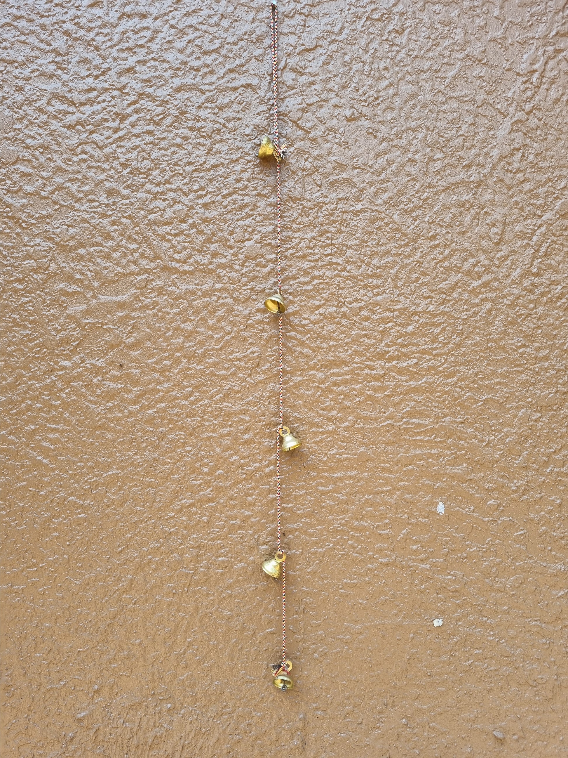 Delicate, golden, and full of charm — these handcrafted brass bells are designed to bring soft sound and sacred beauty into your space. Strung vertically on braided cord, each little bell carries a gentle chime that feels light, whimsical, and peaceful.