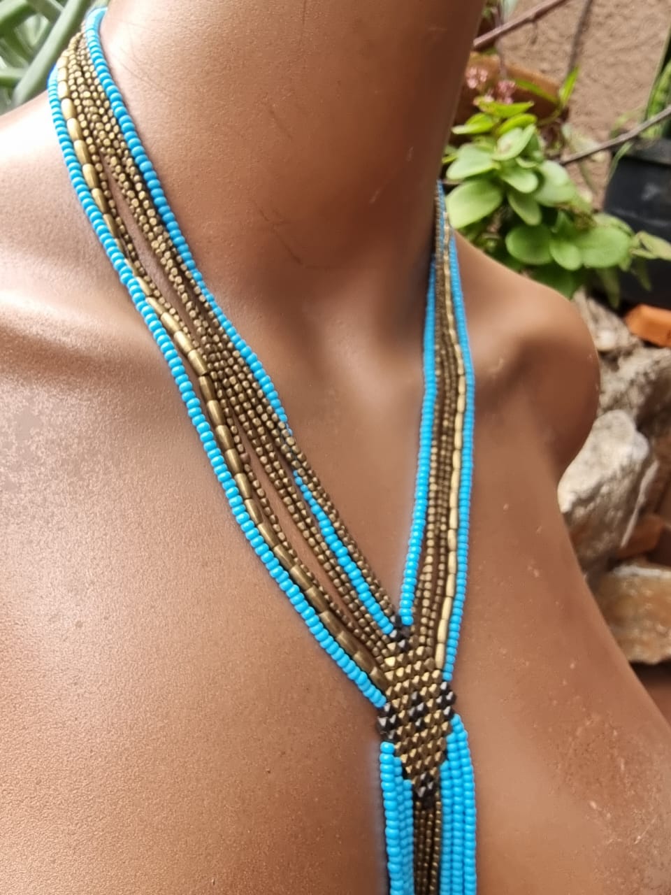 This stunning handcrafted brass bead necklace blends earthy tones with vibrant colour for a look that is both bold and beautifully balanced.
