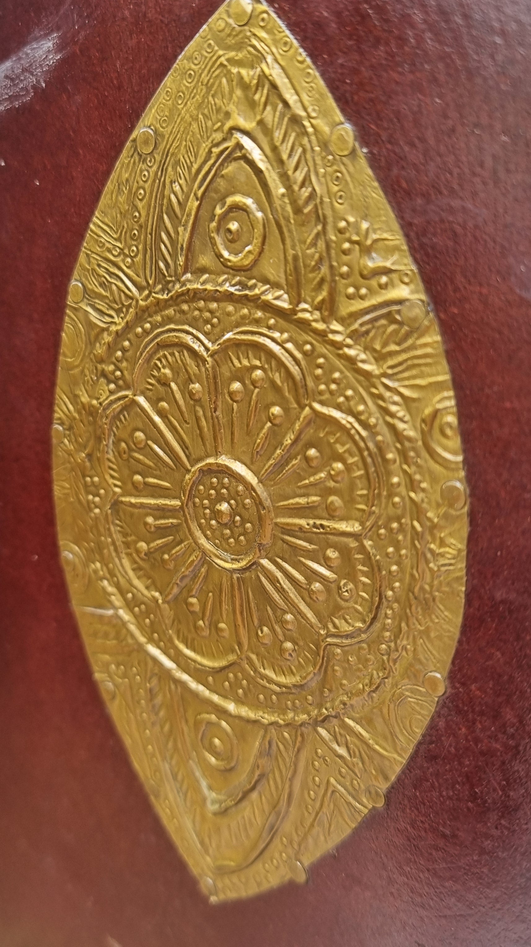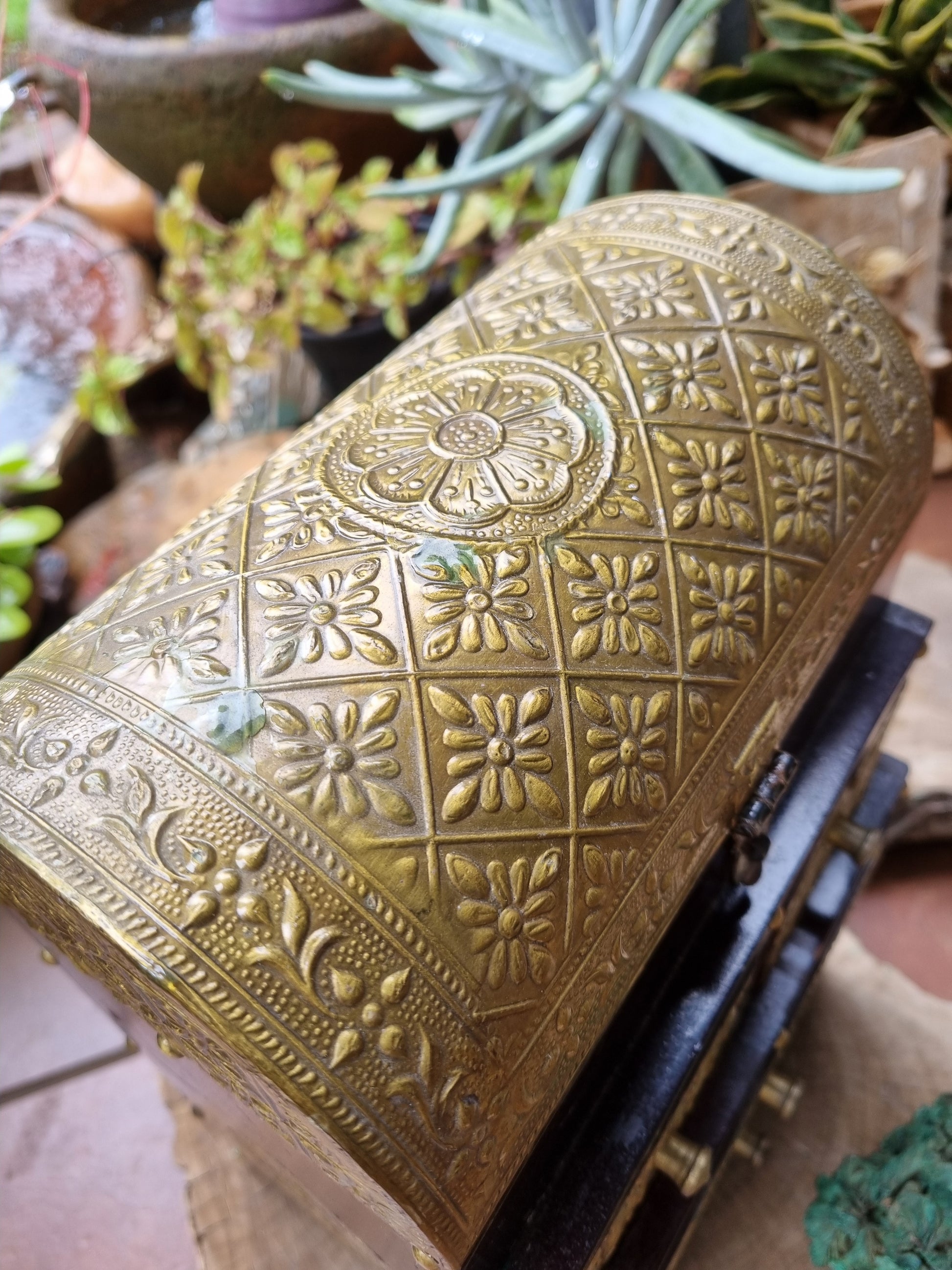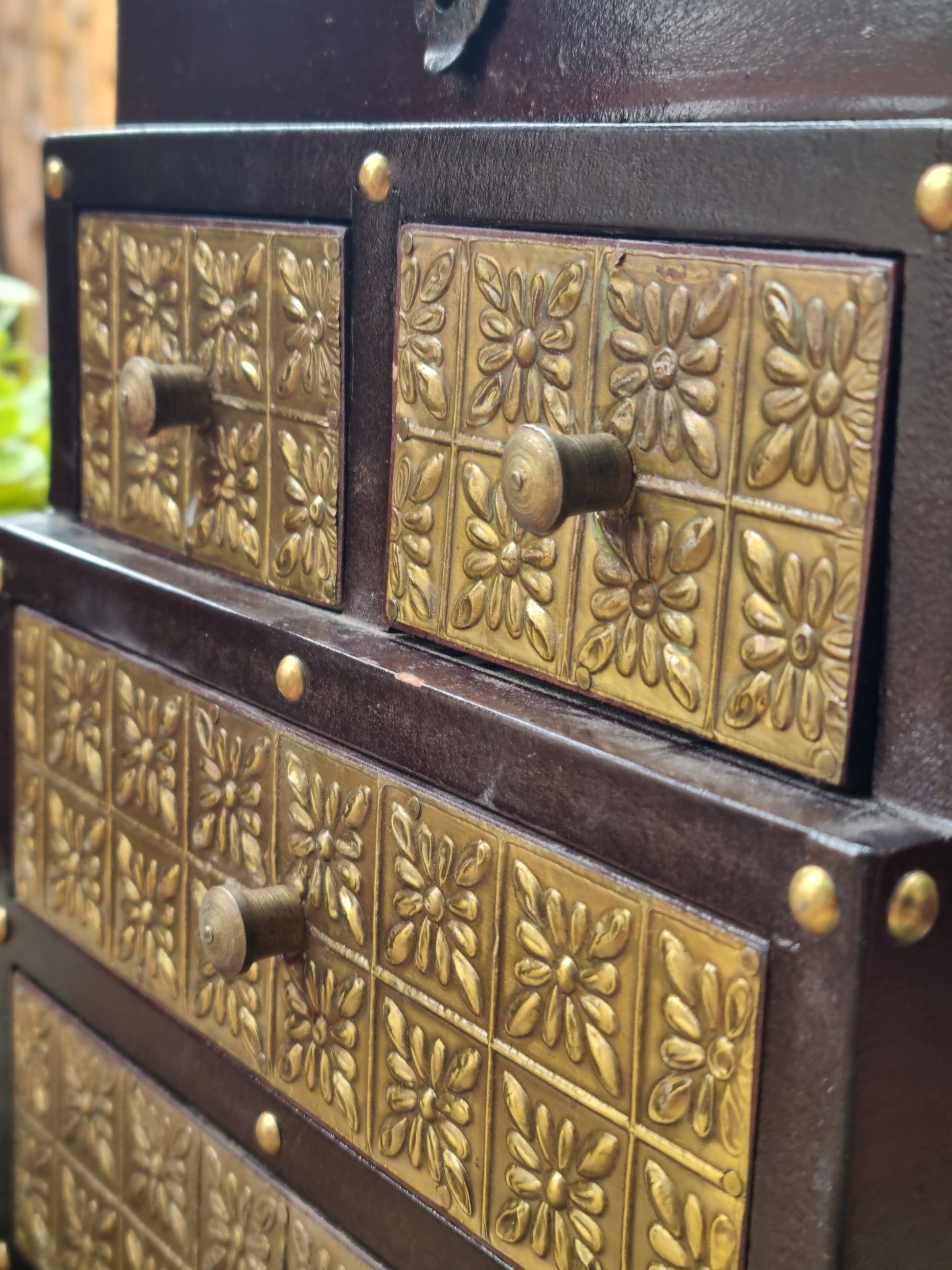 Beautifully made from wood and brass, it features intricate embossed floral detailing that captures the essence of traditional Indian artistry.