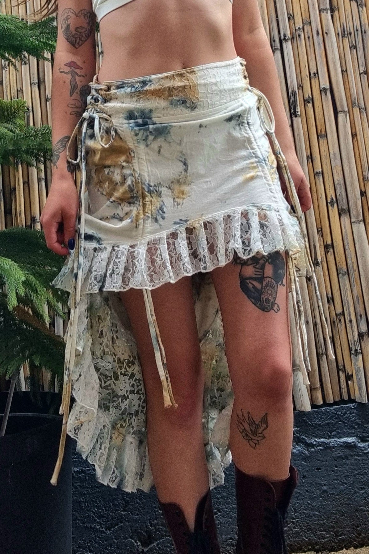 This whimsical lace skirt is a feminine dream, designed with adjustable lace-up sides to comfortably fit sizes from Small to Large.