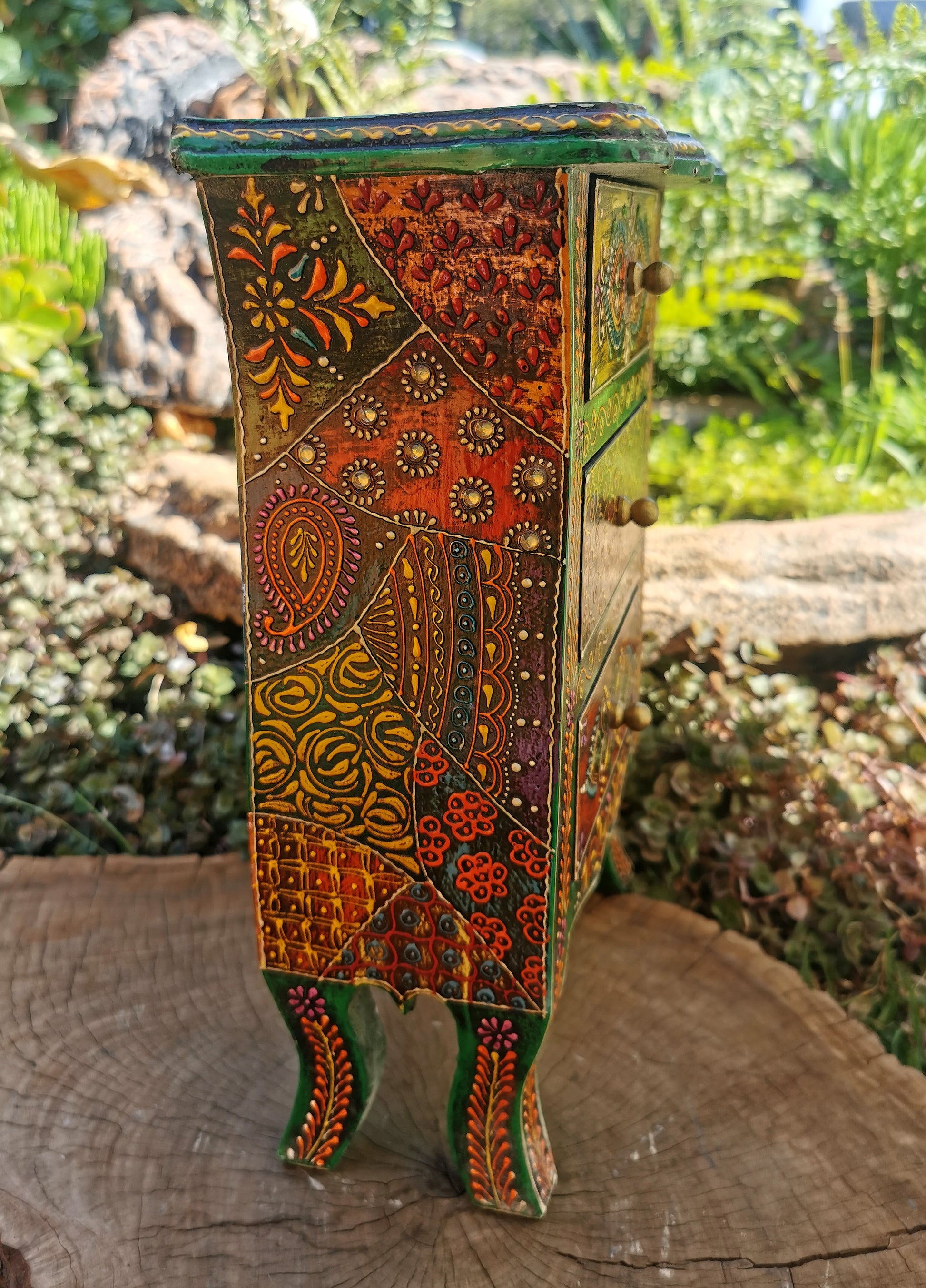 Add a touch of warmth to your space with our stunning hand painted jewelry box . The intricate design adds an oriental feel and will surely elevate your space. Perfect for personal use or as a thoughtful gift.