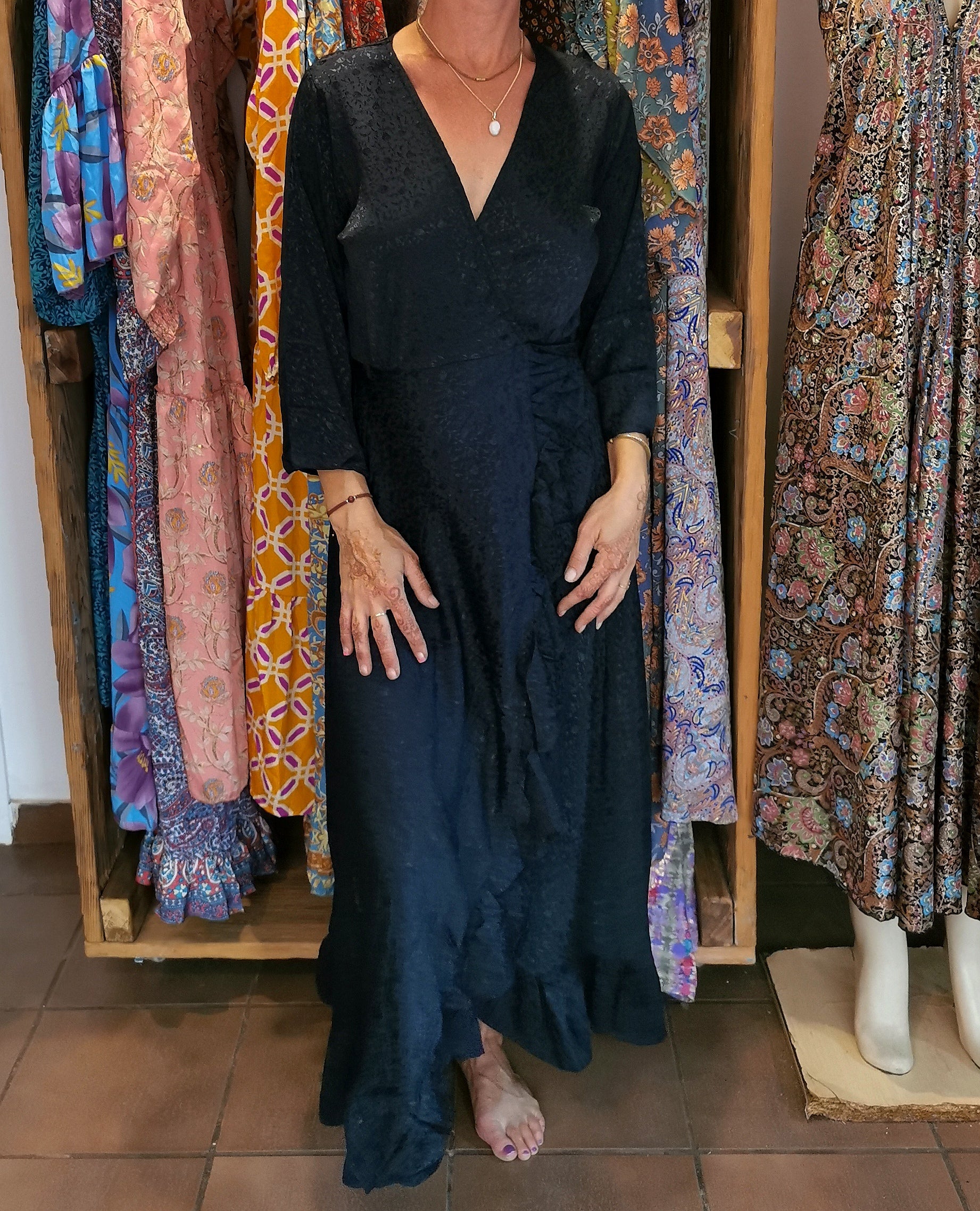 Unleash your inner dark goddess with our Isis Wrap Dress. This stunning dress exudes elegance with its flowing silhouette and flattering wrap design. With its rich color and timeless style, you'll feel confident and empowered every time you wear it. Elevate your wardrobe and embrace your inner queen with the Isis Wrap Dress!