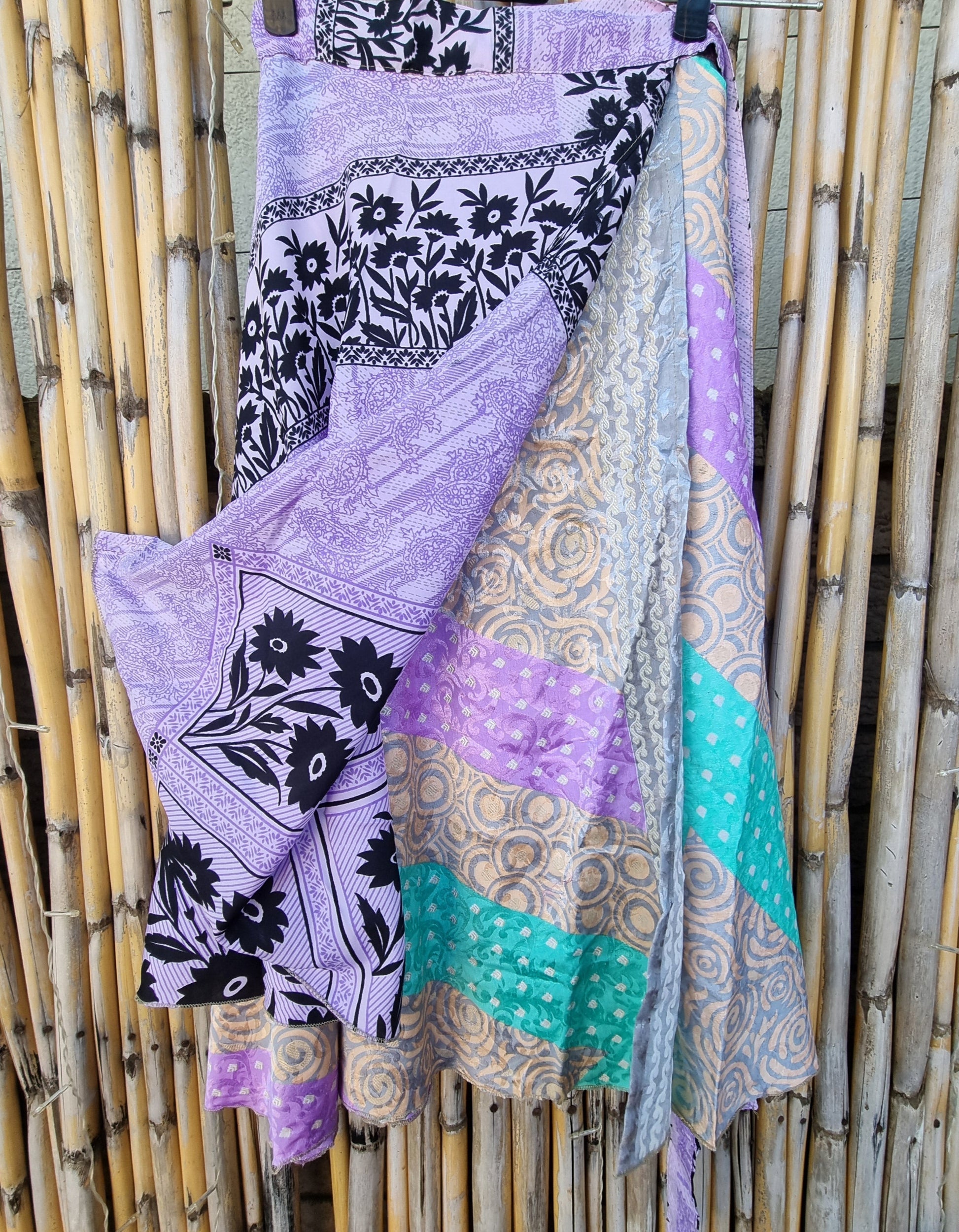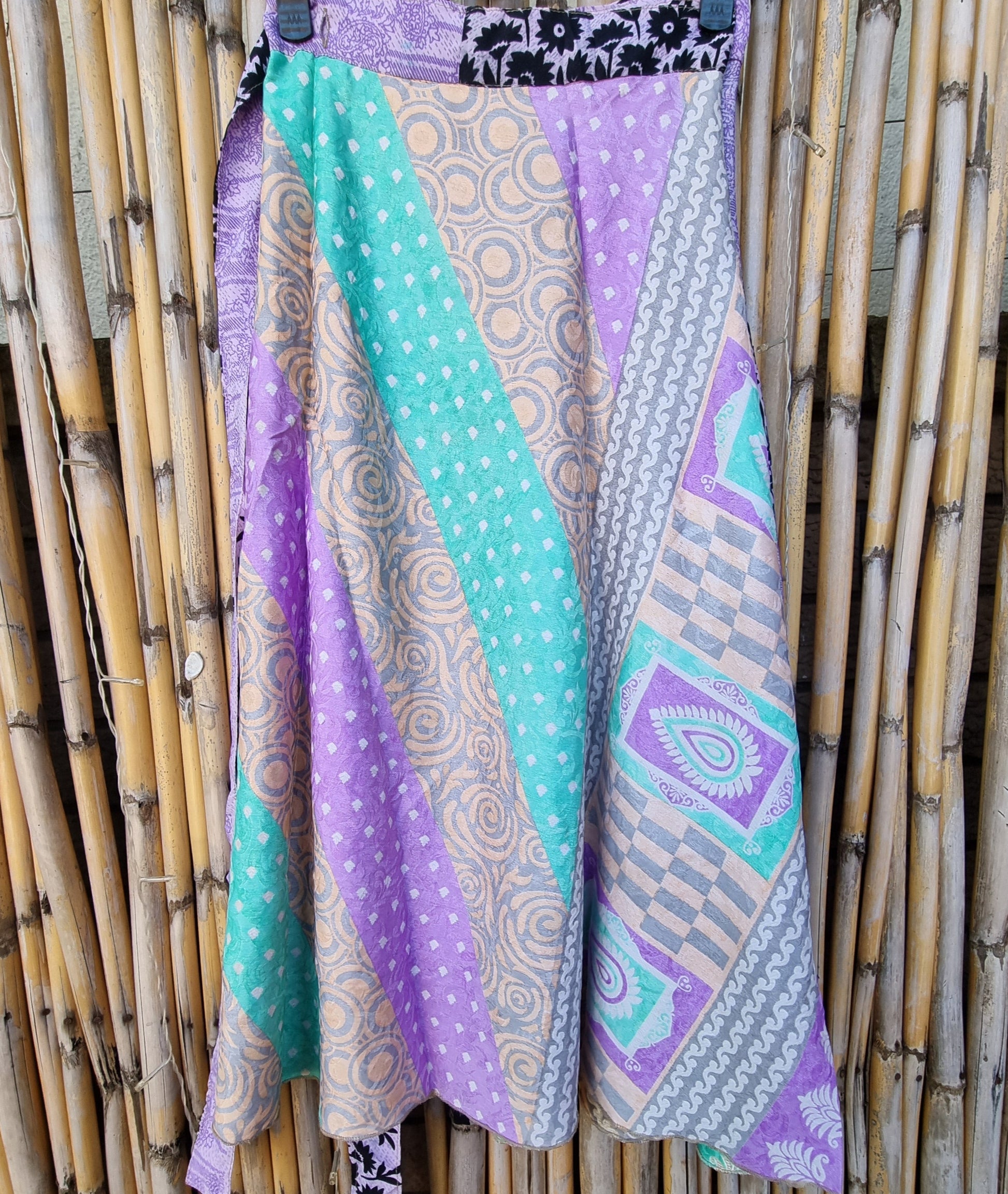 lovingly handcrafted from upcycled Indian saris, this skirt is a wearable piece of art.Β