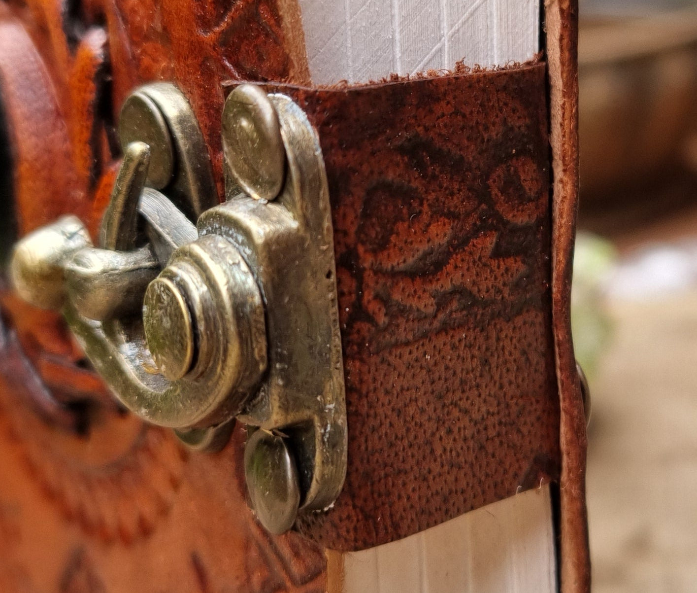 Take your writing to the next level with this leather journal from India. Crafted with care and featuring an eye-catching design, it's the perfect blend of style and function. Let your words flow freely in this unique and playful journal.
