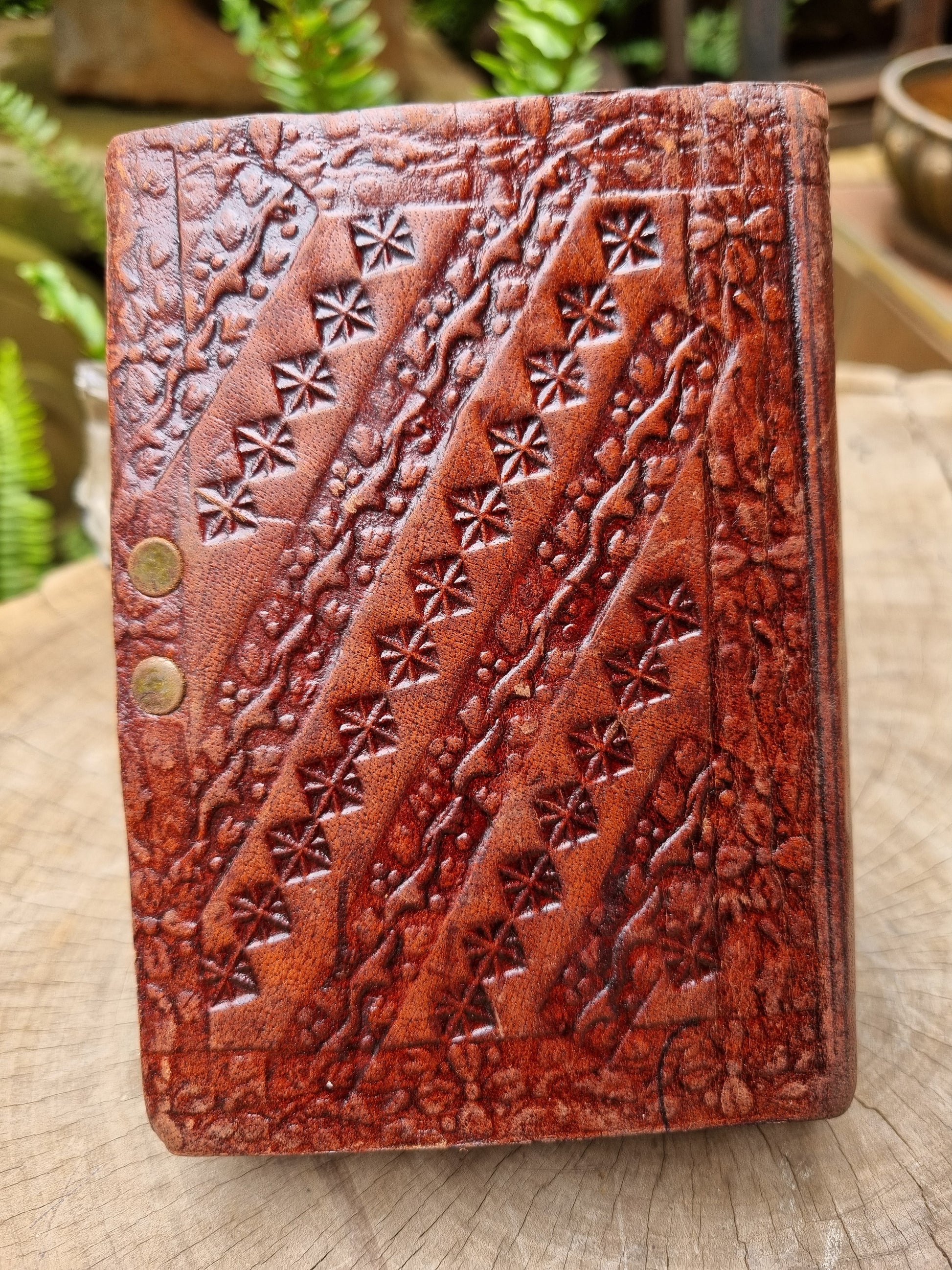 Take your writing to the next level with this leather journal from India. Crafted with care and featuring an eye-catching design, it's the perfect blend of style and function. Let your words flow freely in this unique and playful journal.