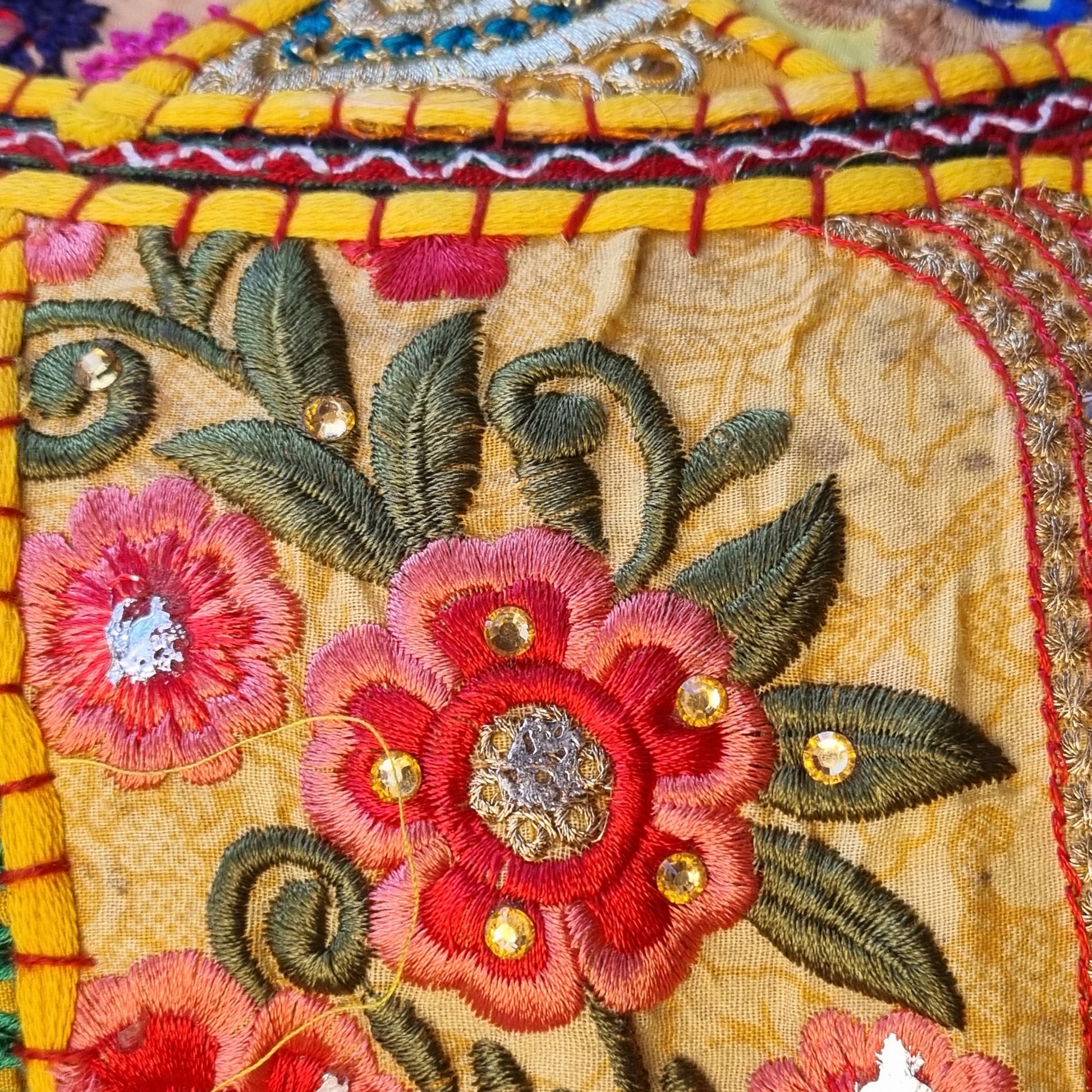 Featuring intricate embroidery, delicate beadwork, and mirror embellishments, this cushion is a celebration of traditional craftsmanship. Finished with vibrant tassels on each corner and a zip closure for easy care and re-stuffing.