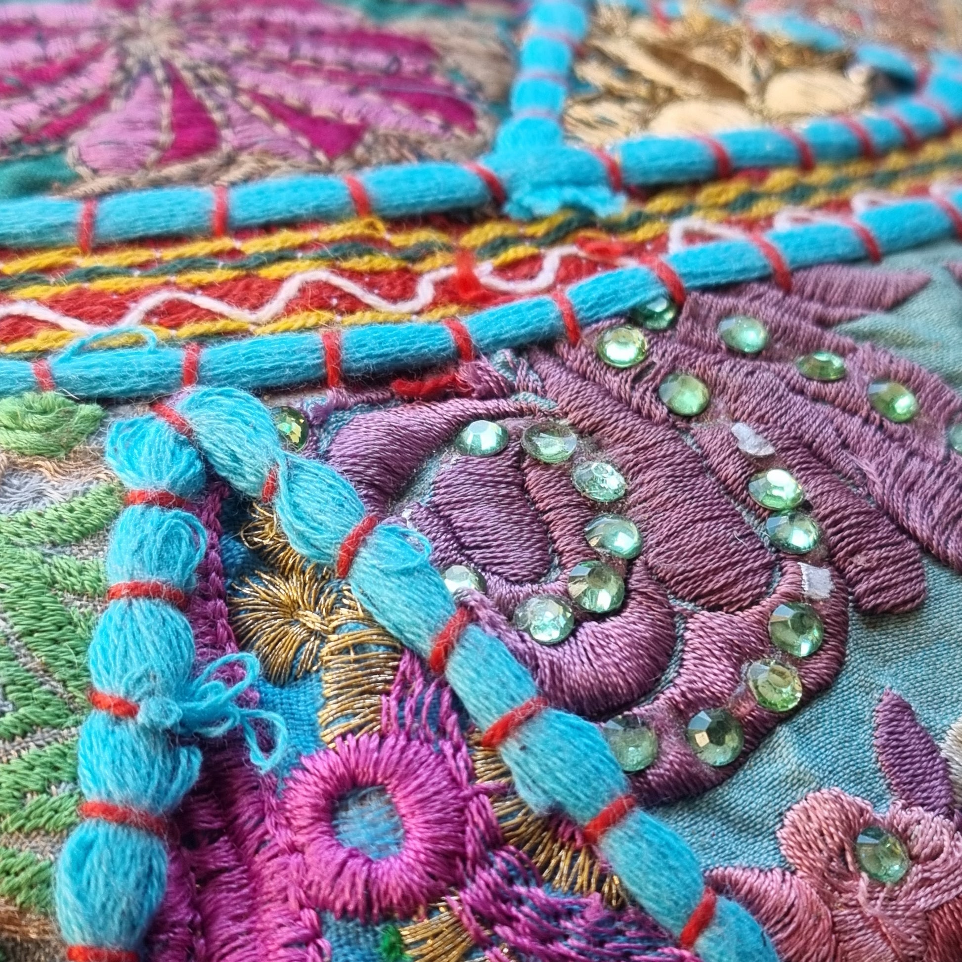 Featuring intricate embroidery, delicate beadwork, and mirror embellishments, this cushion is a celebration of traditional craftsmanship. Finished with vibrant tassels on each corner and a zip closure for easy care and re-stuffing.