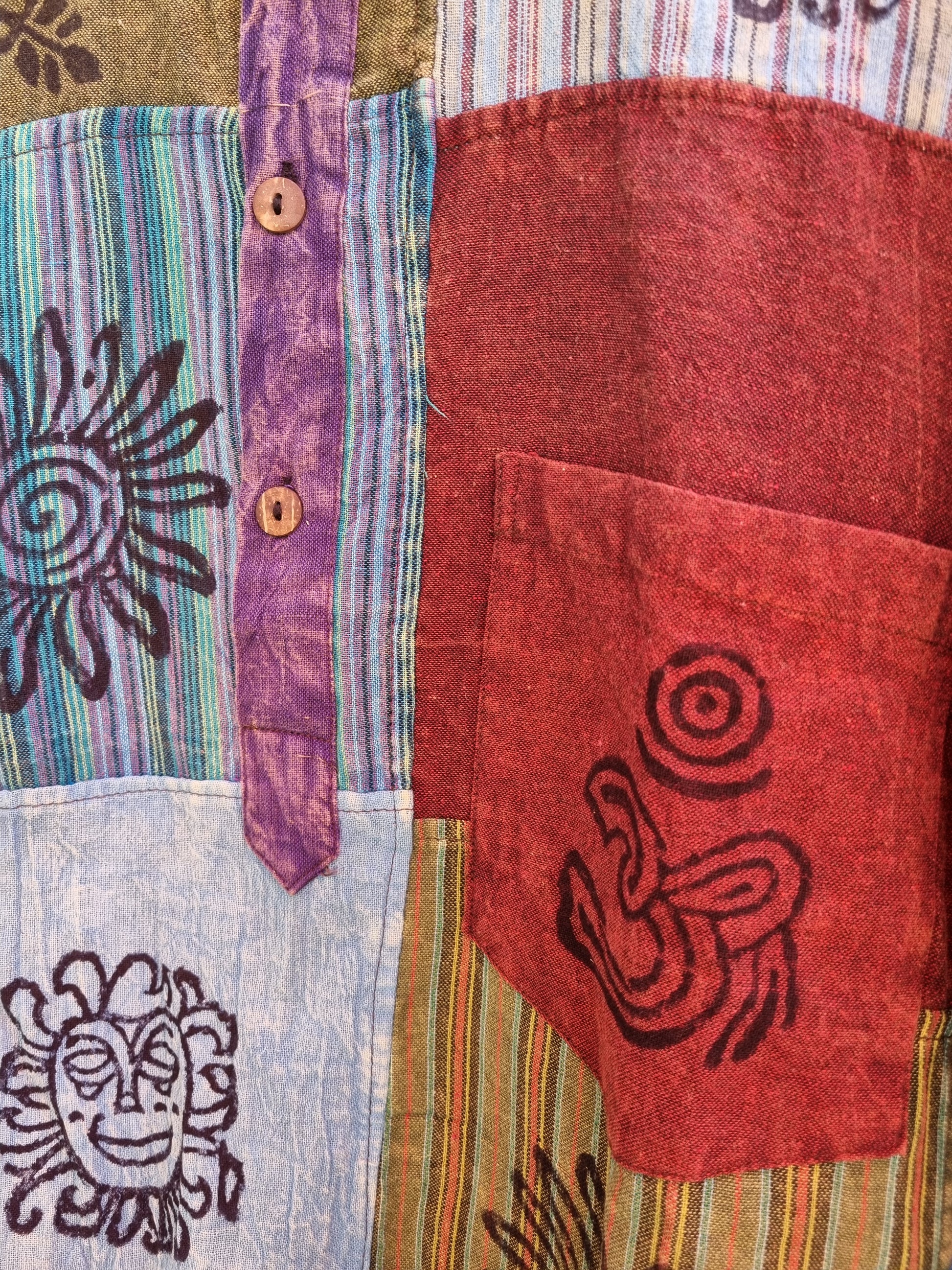 a comfortable and earthy piece for everyday wear, this men's patchwork cotton top is lightweight, breathable, and full of character.