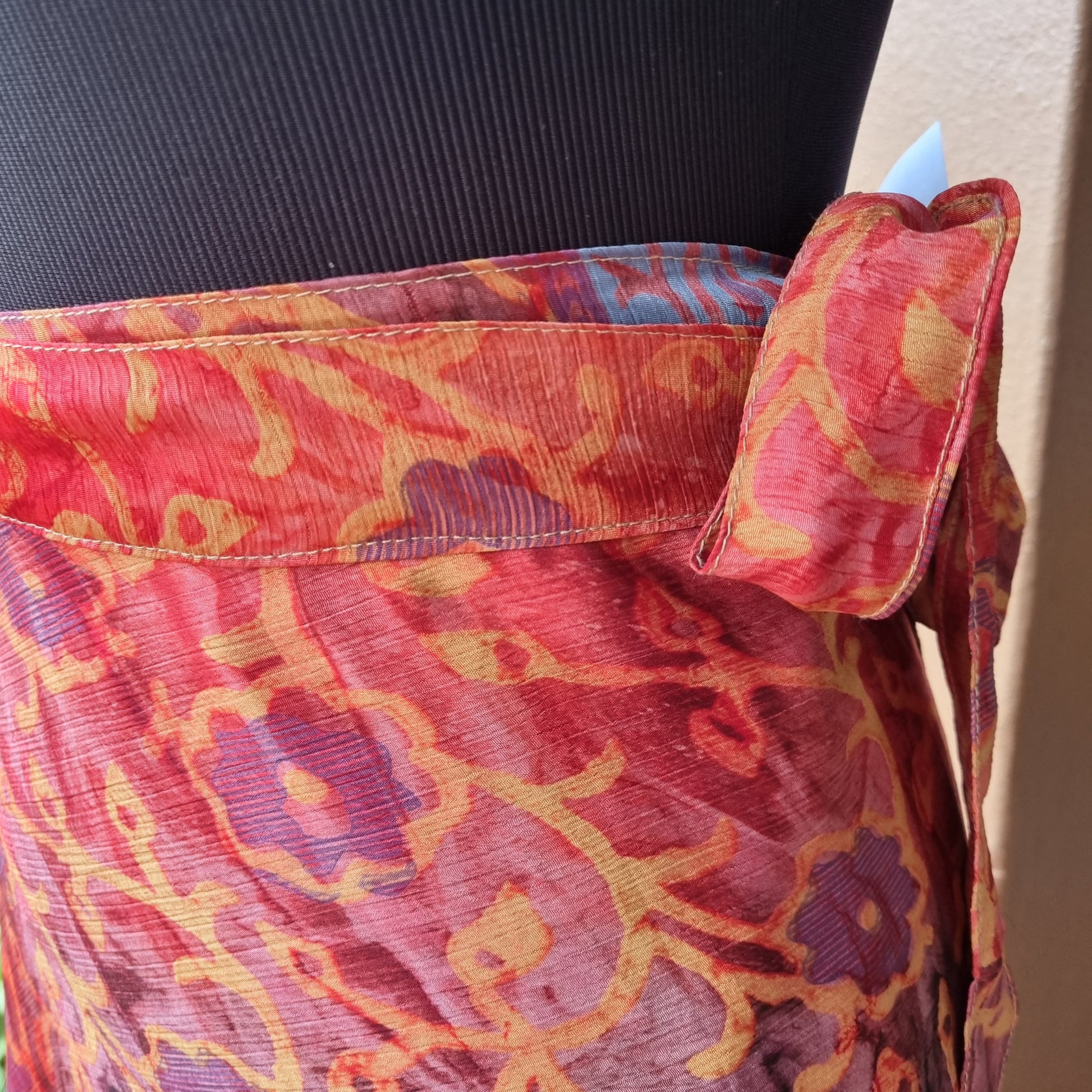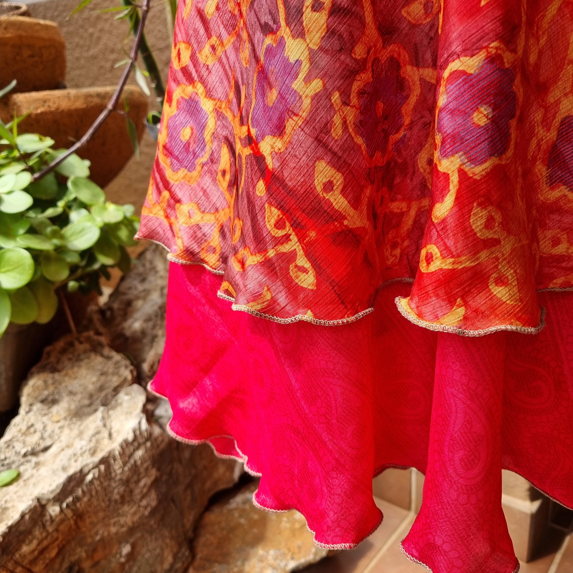 lovingly handcrafted from upcycled Indian saris, this skirt is a wearable piece of art.Β
