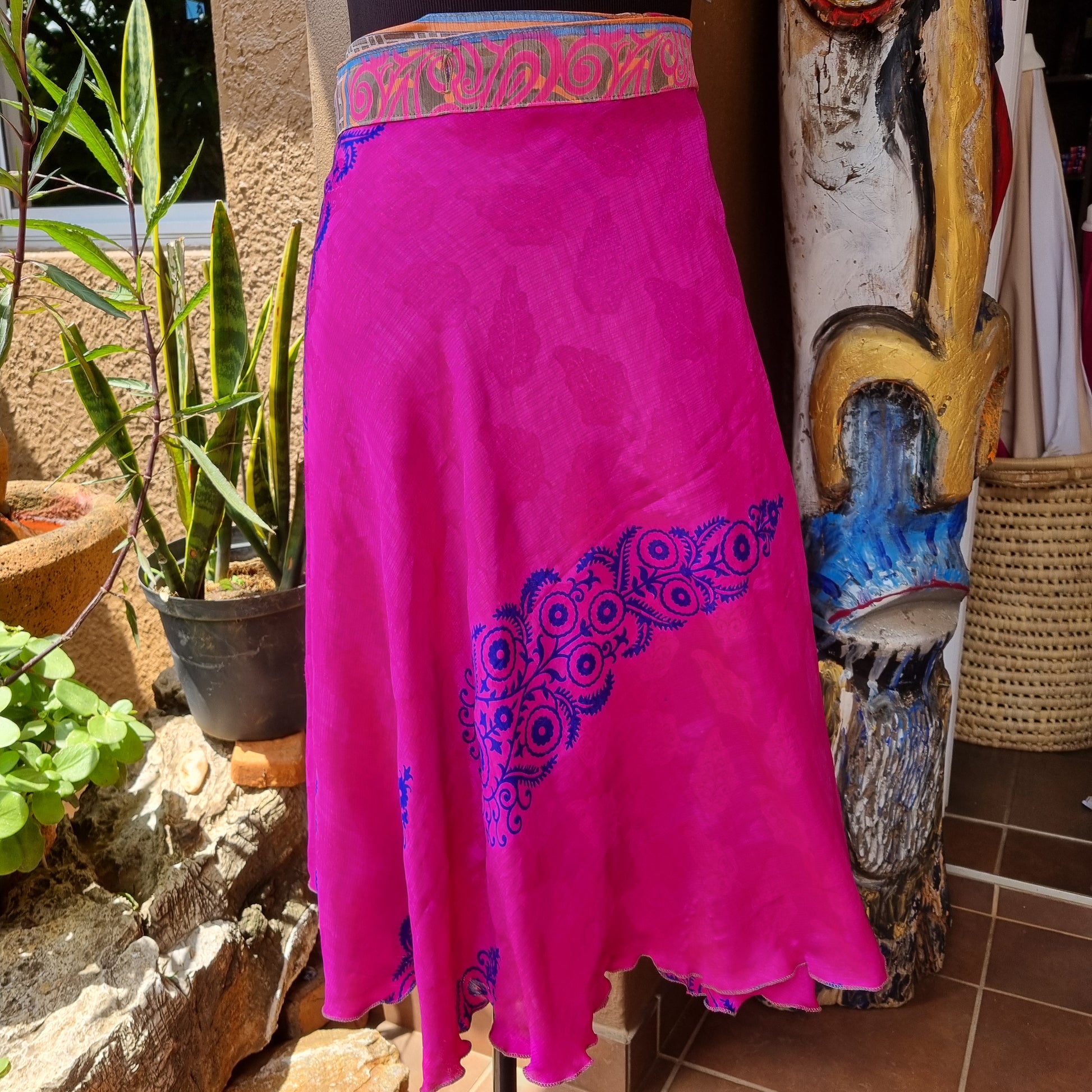 lovingly handcrafted from upcycled Indian saris, this skirt is a wearable piece of art.Β