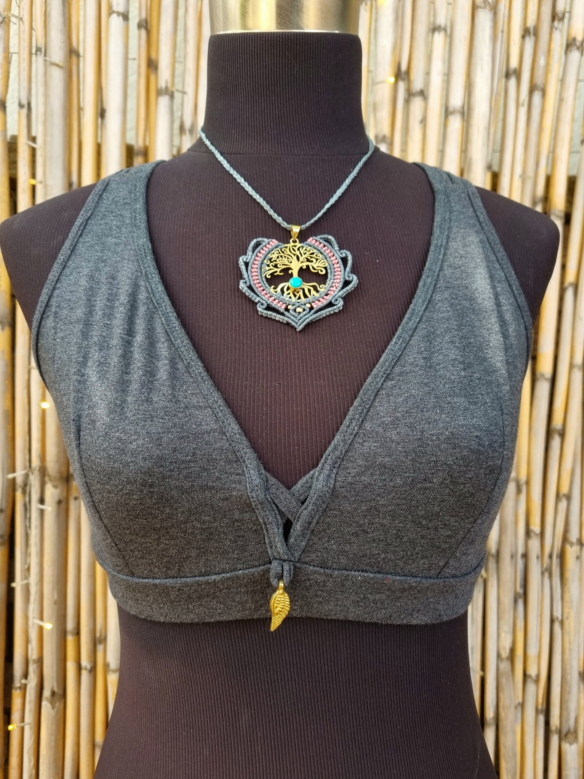 This soft and supportive cotton yoga top is designed for both comfort and style.