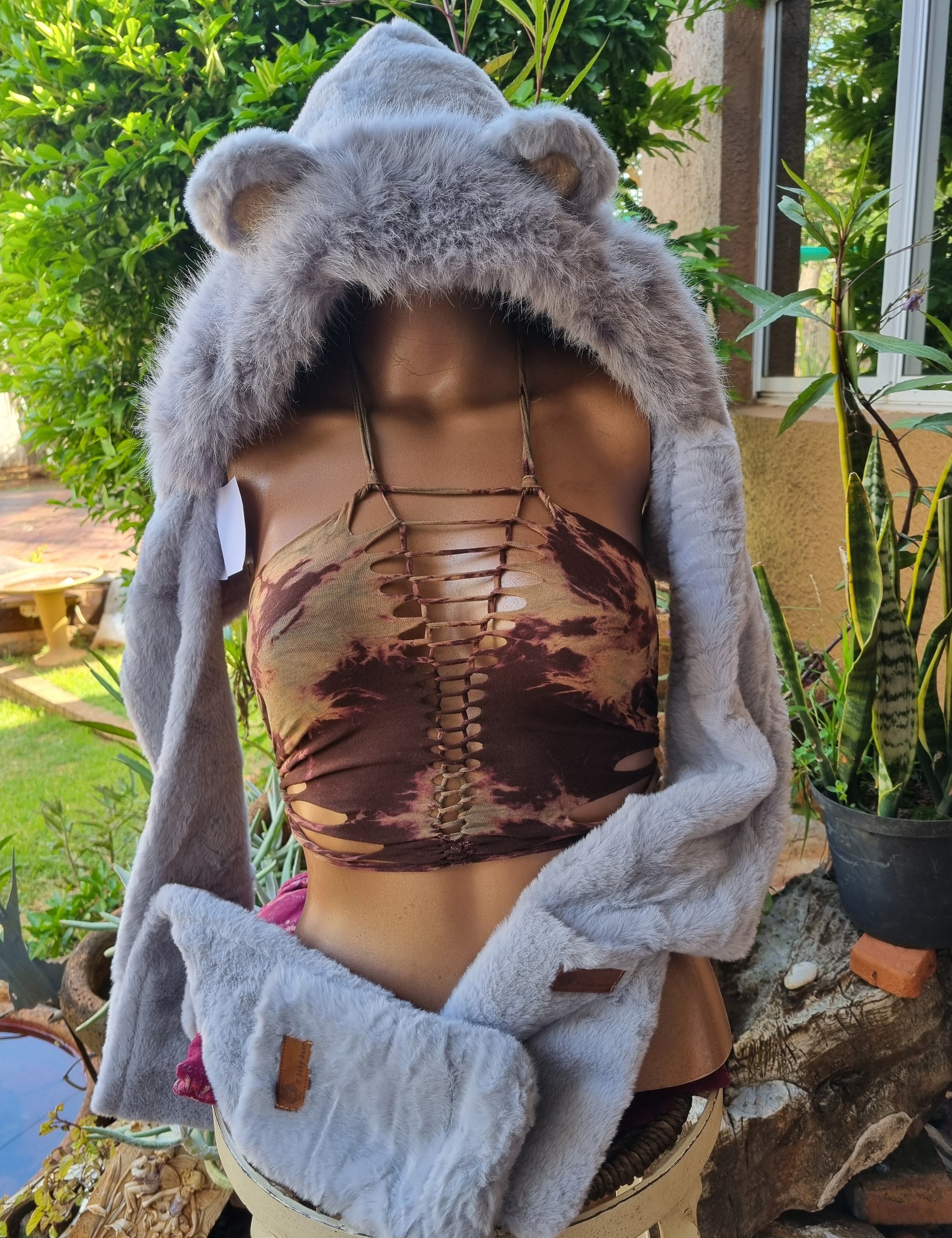 Wrap yourself in the softest cuddle with this ultra-fluffy Spirit Hat. Designed for warmth and playful style, it features an adorable hood with sweet little ears and long plush “arms” that drape down beautifully.
