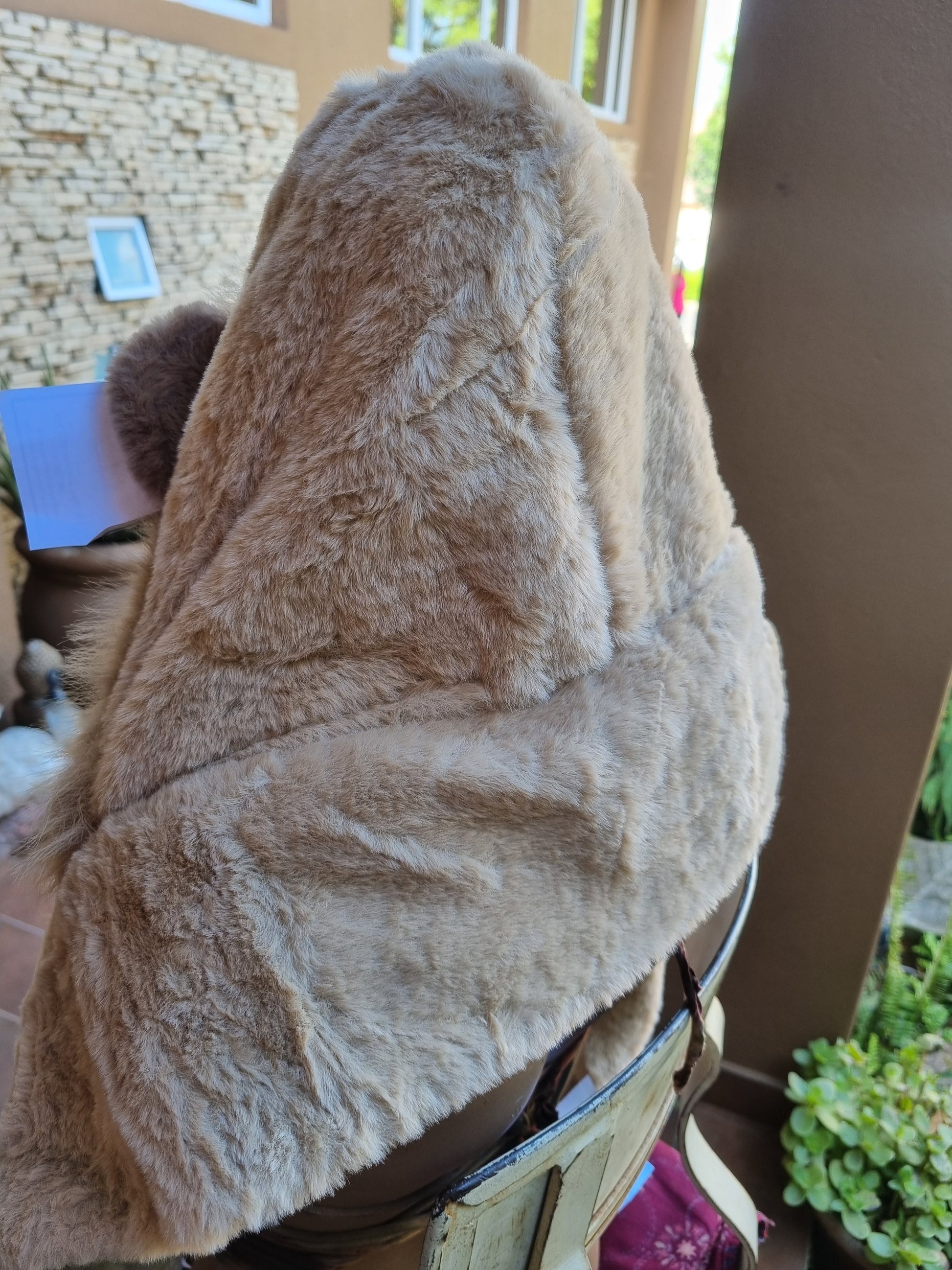Wrap yourself in the softest cuddle with this ultra-fluffy Spirit Hat. Designed for warmth and playful style, it features an adorable hood with sweet little ears and long plush “arms” that drape down beautifully.