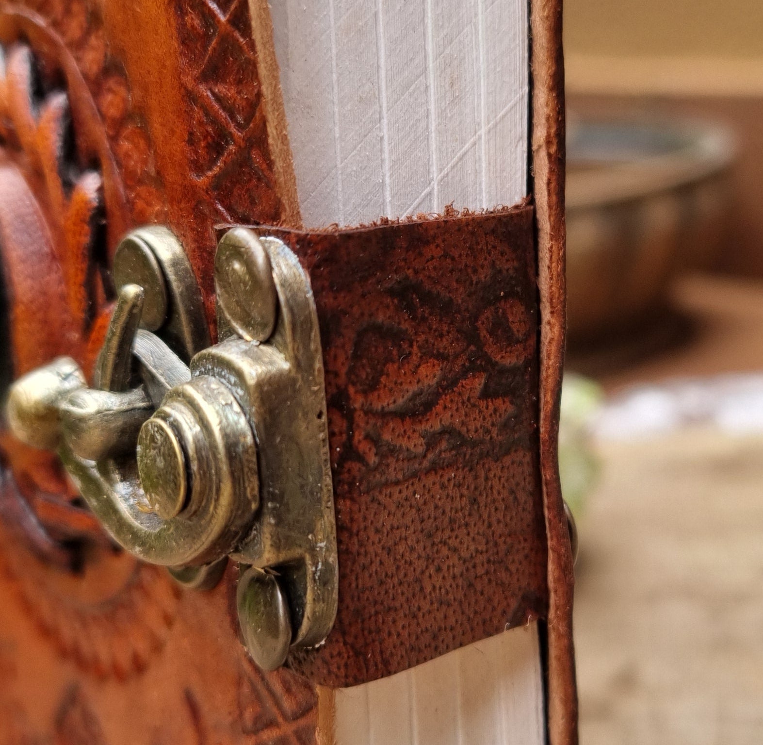 Take your writing to the next level with this leather journal from India. Crafted with care and featuring an eye-catching design, it's the perfect blend of style and function. Let your words flow freely in this unique and playful journal.