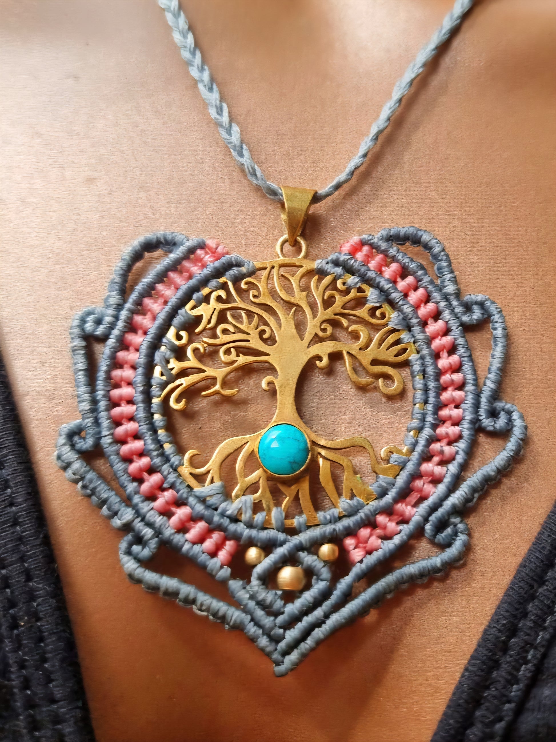 Handmade in India using traditional macramé techniques, this necklace is a unique wearable artwork—bold, meaningful, and effortlessly bohemian.